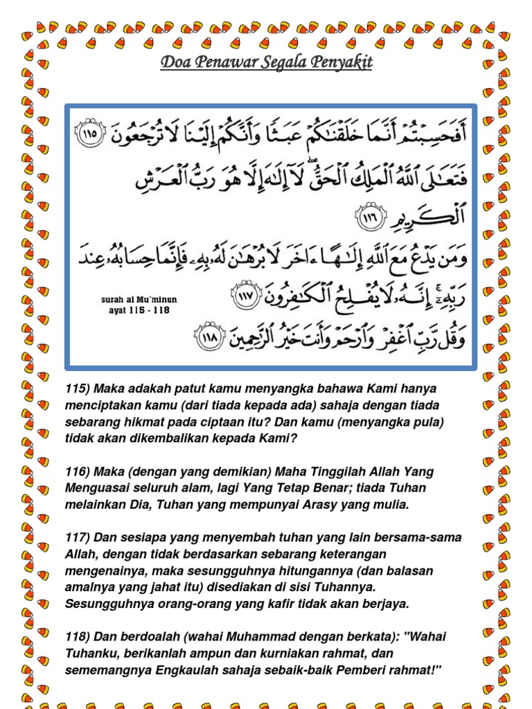 Al fatihah penawar segala penyakit. Tidak ada penyakit yang tidak ada obatnya, allah berfirman bahwa segala bentuk penyakit telah allah sedikan obatnya di dunia ini yang tersebar di alam bebas dan di sekitar kita. Amalan doa penyembuh segala penyakit bermustajab mudah diamalkan. Dengar doa syifa ini apabila sakit must listen to this syifa dua when ill. Teks doa penawar segala penyakit.